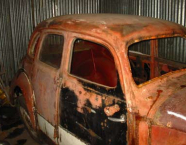Skoda Tudor została znaleziona na jednym z podbydgoskich szrotów w opłakanym stanie. Nie posiadała żadnego elementu wnętrza oprócz niekompletnej deski rozdzielczej. Brakowało boczków wszystkich drzwi, nie miała żadnych lamp, brakowało też szyby czołowej. Jednym słowem była to kupa zardzewiałej i w niektórych miejscach przeżartej blachy z "umarłym" silnikiem, ze skrzynią biegów do której do dziś nie mogę znalezć cięgien aby ją połączyć z przekładnią na kolumnie kierownicy.